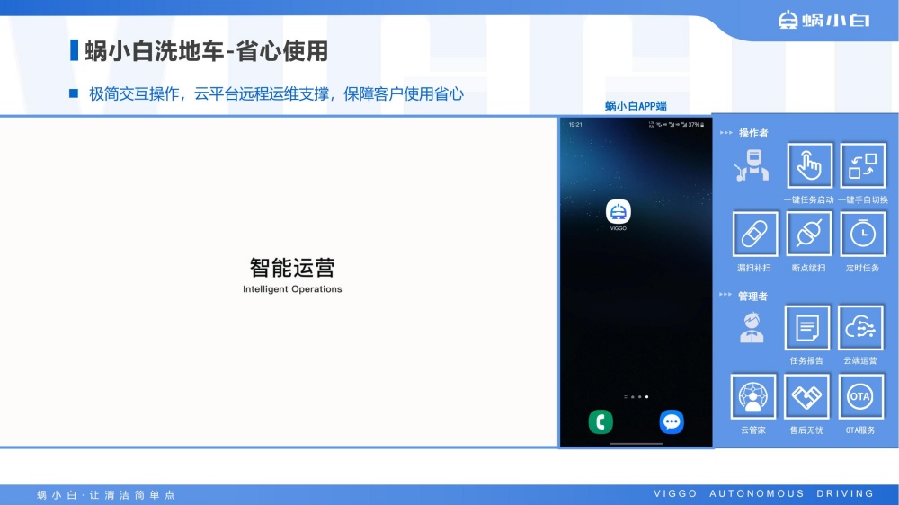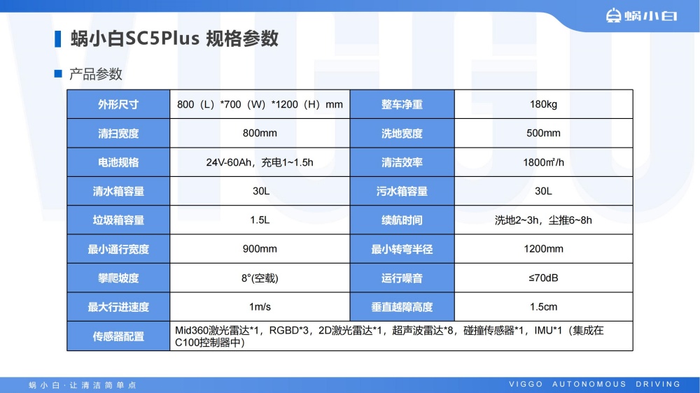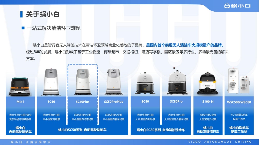 蜗小白SC50无人驾驶洗地机是智行者科技推出的一台洗扫推一体,一机多用的通用型智能清洁洗地车,具备精准环境感知、自动路径规划、自主避障、自动充电、自动加/排水、污水自动过滤等功能,可轻松应对水泥、大理石、PVC等各种室内中小型场景硬地面。