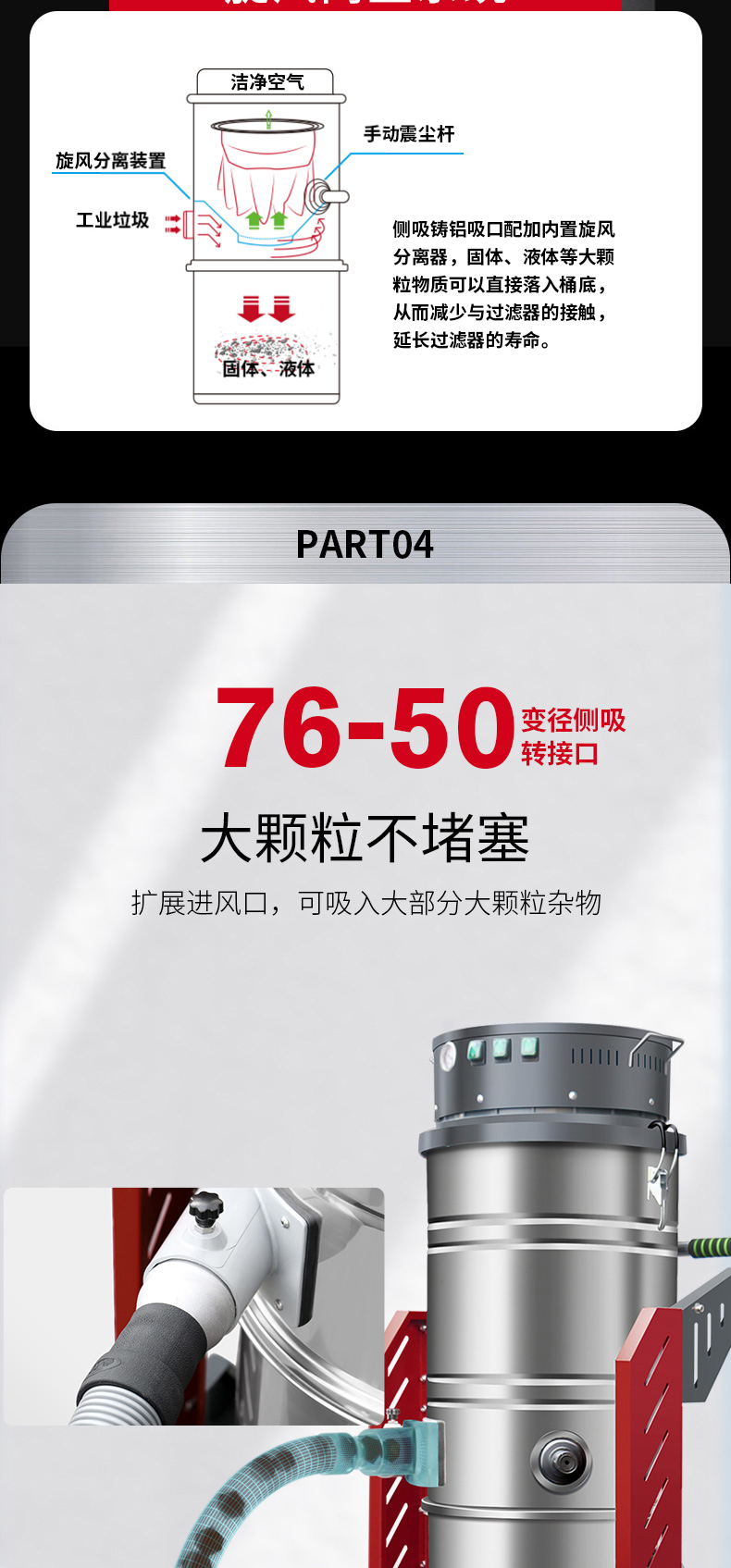 包头坦洁380V双桶不锈钢工业吸尘器X7系列