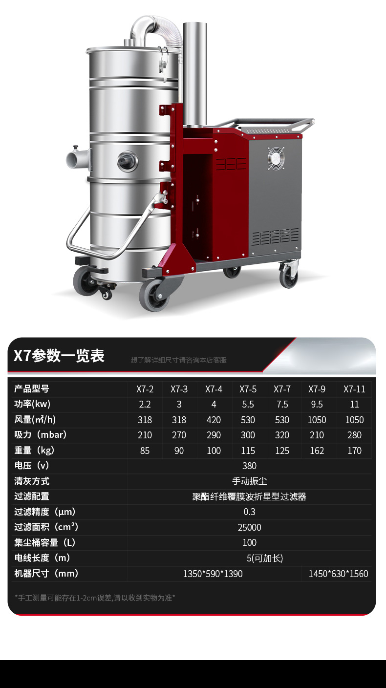 包头坦洁380V双桶不锈钢工业吸尘器X7系列